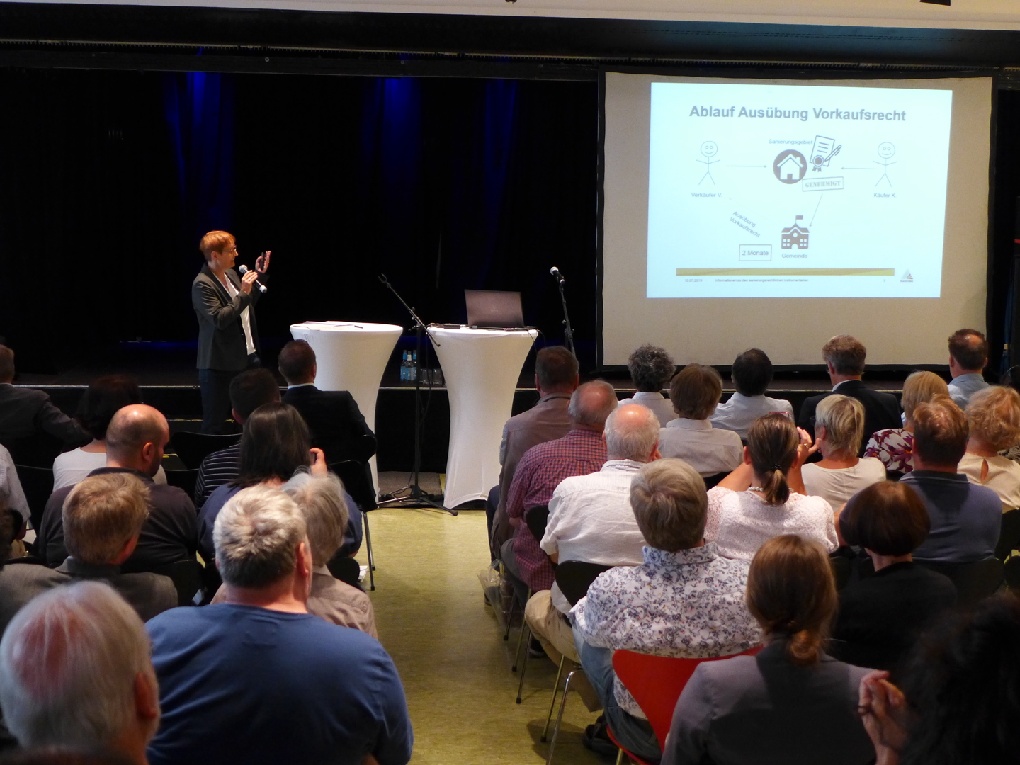 Im Zuge des Sanierungsverfahrens sind rechtliche Rahmenbedingungen zu beachten, die insbesondere dazu dienen, die Umsetzung der Sanierung zu unterstützen und Fehlentwicklungen wie auch Spekulationen zu vermeiden. Vertreterinnen und Vertreter des Stadtplanungs- und des Liegenschaftsamtes erläuterten hierzu die verschiedenen Instrumentarien, wie Vorkaufsrechte und Kaufpreisprüfungen.